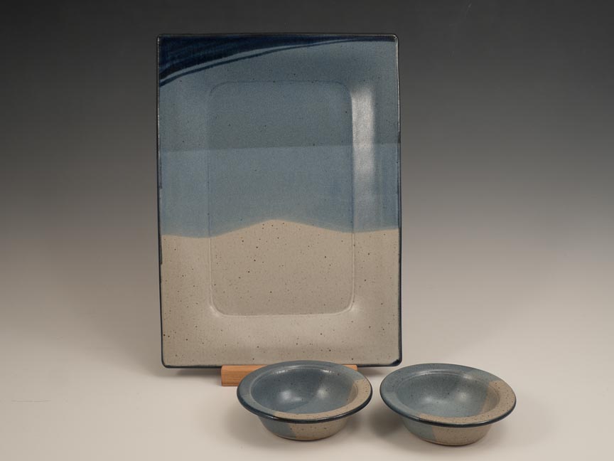 Very Blue Tan Serving Bowl 8” diameter x 4” high |